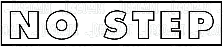 No step. White letters, black outlines, on clear vinyl. 10 per sheet.